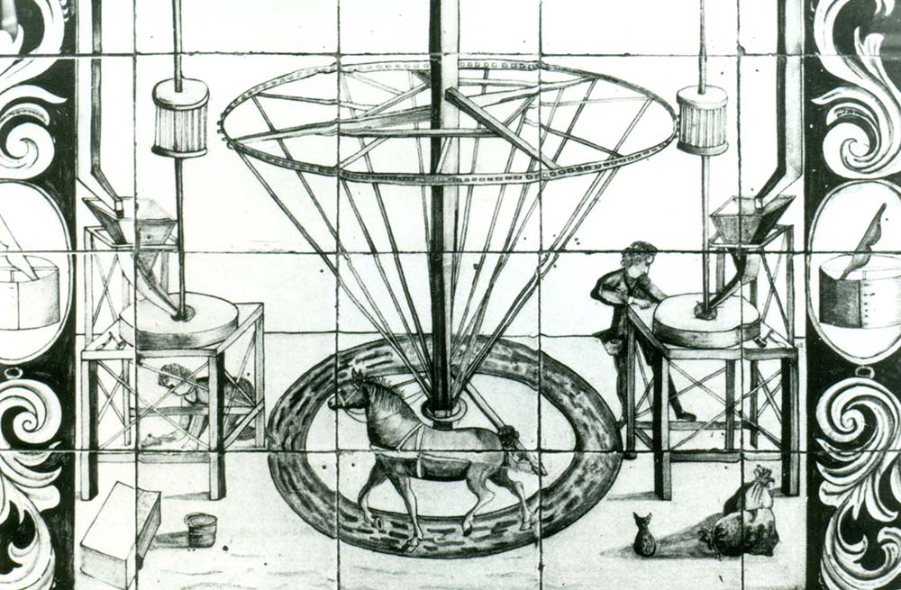Tegeltableau met de paardenmolen van Van Muiswinkel in Zwammerdam.